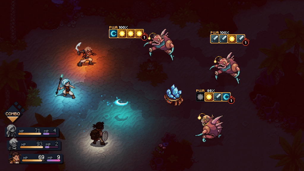 The two big combat mechanics that are worth noting are the timed hits and blocks and the “locks” system. Properly executing a timed attack or block and utilizing the strategy behind the “locks” system is what elevates the battlefield. The “locks” system lists a string of elemental and/or weapon type damage above an enemy that depending on how many of them you can break before an enemy’s turn counter reaches zero can either impact how much damage they are able to output or negate their attack entirely. Mastering your ability to break the locks and strategizing your approach in battle can quickly help turn the tides while floundering in certain scenarios can result in dire consequences. This approach to combat helped Sea of Stars not only remain engaging throughout the entirety of the adventure but made each rotation of turns feel like little battle puzzle blocks that were satisfying to solve and bursting with elation, especially in boss fights and later game scenarios.
