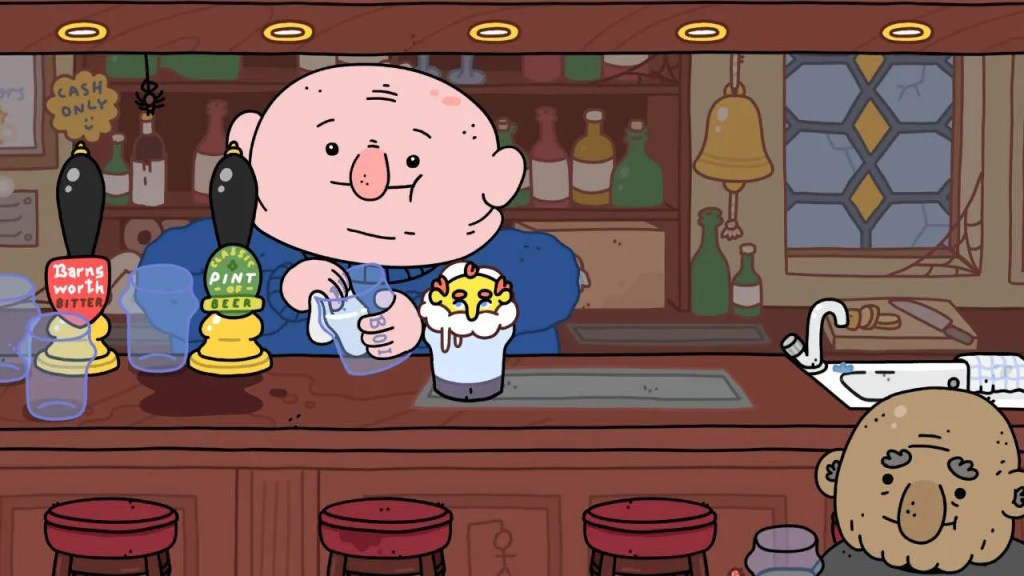 Loveably odd characters in charming hand drawn animation were bolstered by expertly delivered voice acting which not only helped stuff Barnsworth full of life but ensured the cleverly penned puns and jokes shined through. From cheeky giggles from characters stuck in precarious predicaments or a homeowner reacting to you falling down a chimney, when the soot settled the artistry on display always delivered a grin or chuckle from behind my beard. With occasional absurd cutscenes and story progression abruptly bookended by chapter names with the cast reciting them, every crumb of detail in the presentation of Thank Goodness You’re Here is plated with the panache of a five star restaurant. Saturday morning cartoon meets sketch show resulting in an emergent departure from anything even remotely similar in style and execution in video games.